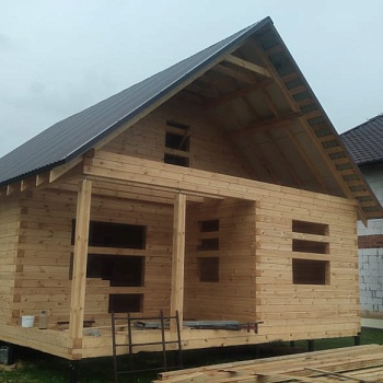 - Сборка дома «под крышу» на участке заказчика на берёзовые нагеля;