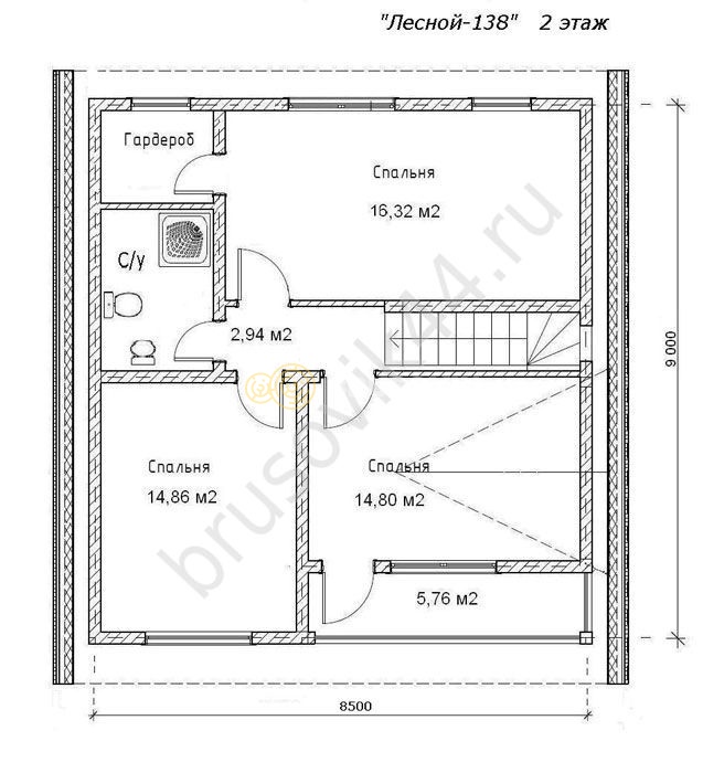- Сруб, выполнен из бруса 150х150 мм., высотой 3,00 метра, нижний венец обработан антисептиком;