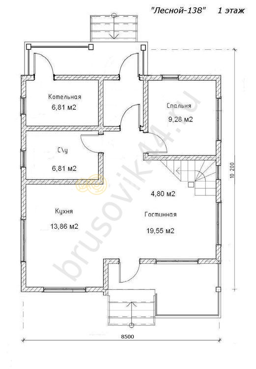 - Внутренние стены 1 и 2 этажей выполнены из бруса 150х100 мм;