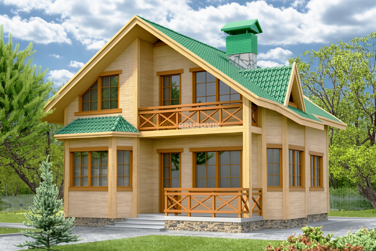 - Фронтоны крыши - рубленные, брус 150х150 мм.;